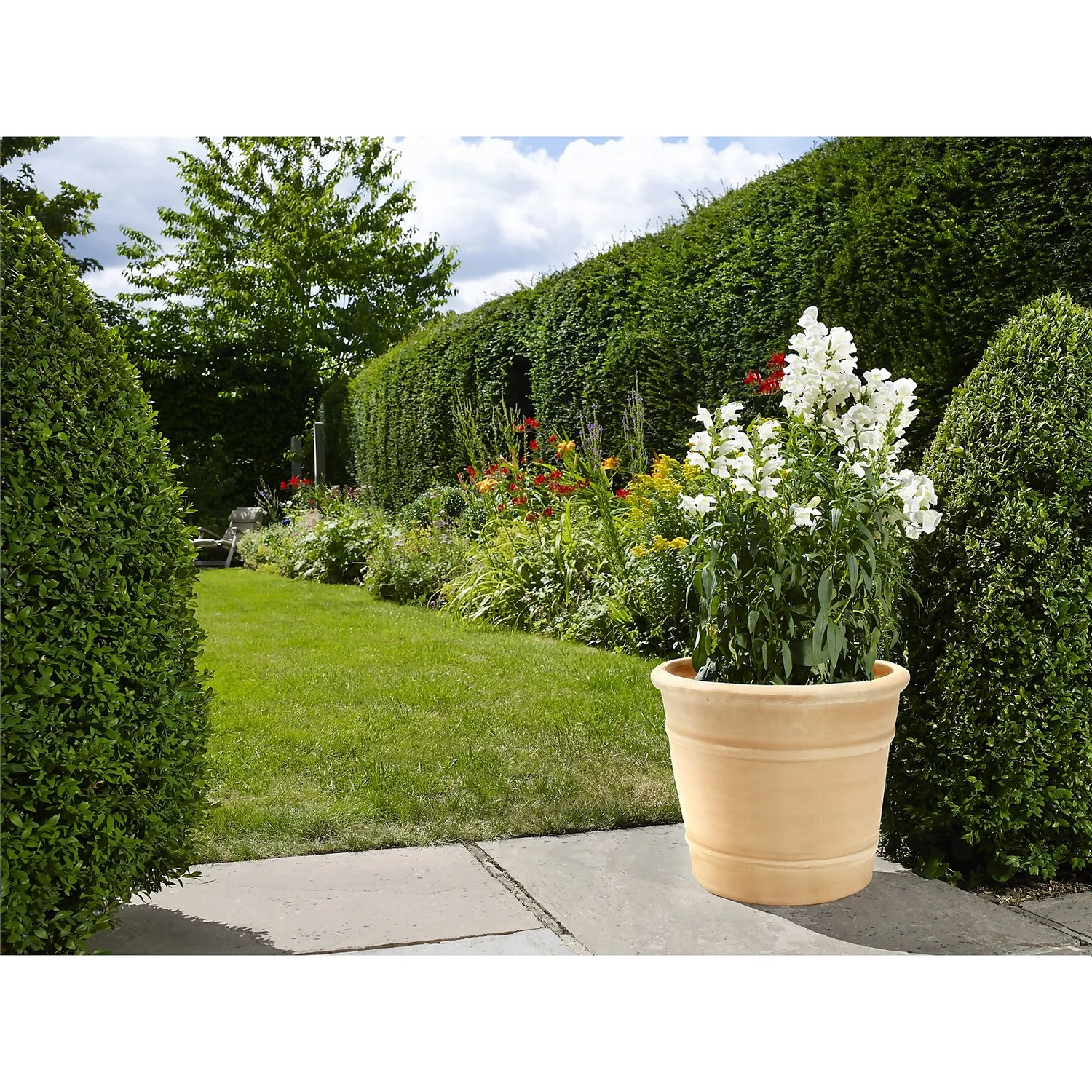 This classic terracotta plant pot with its unique blonde colour adds all year round vibrance to your garden for an affordable price.