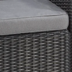 The California 2 seater deluxe balcony set is made of more than 83% recycled resin with a 6mm round wicker design. The woven wicker style creates a luxurious and trendy look and can create a focal point in any outdoor space. The set consists of a two armchairs with wide deep seating and two square foot stools with cushions which is perfect for putting your feet up and relaxing or as an extra seating option when hosting indoors in your conservatory, or outdoors on gardens and patio areas. The cushions included are 7.5 cm thick and provide optimal seating comfort to relax and unwind. Lightweight in its structure therefore is easier to move to suit any setting and is easy and quick to assemble. The garden set is completely maintenance-free and weather-resistant, so you can enjoy the lounge set for years to come.
