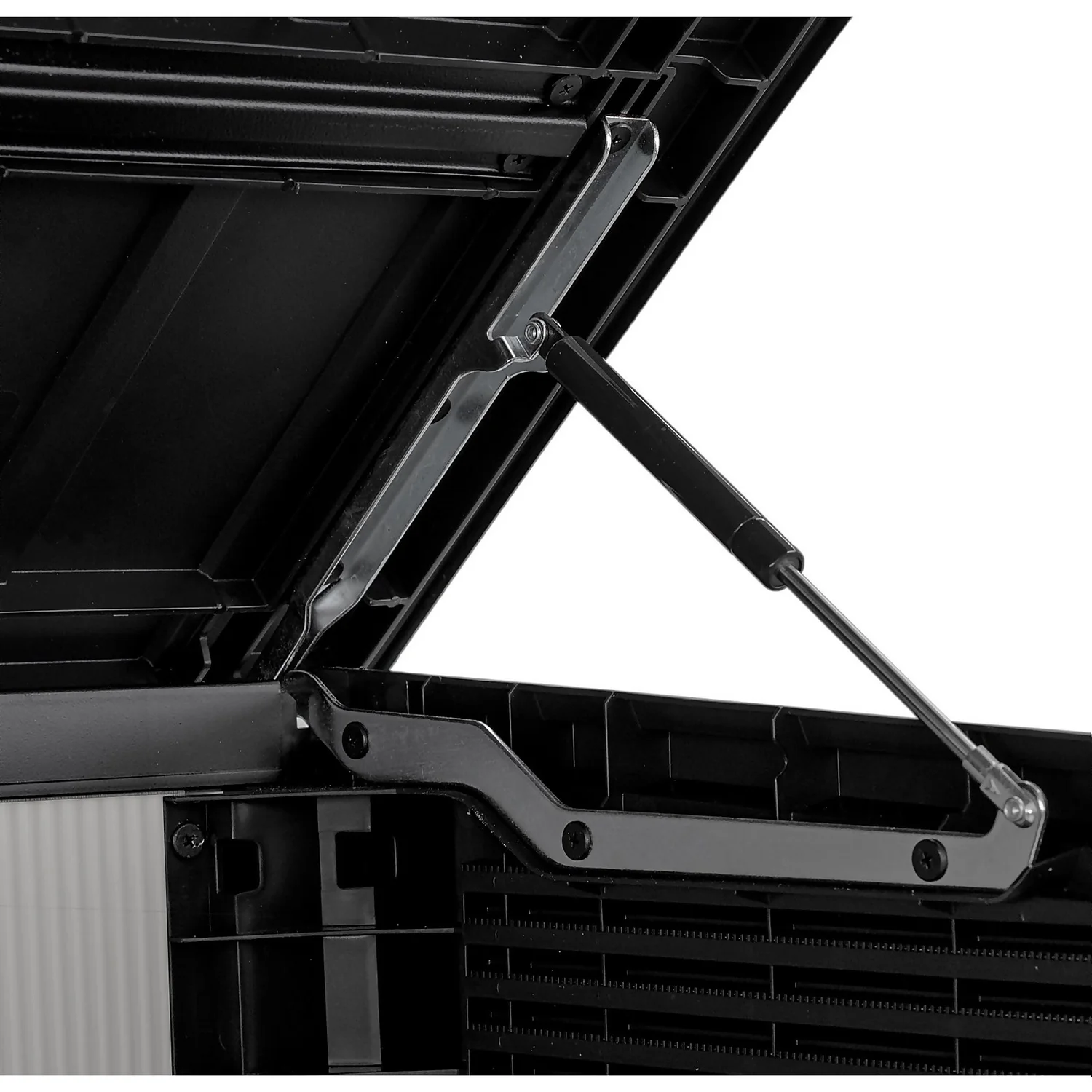 Add super spacious, multi-purpose storage to your garden. While it won’t take up much space, the Premier Jumbo has a 2020 L / 71 cu. ft. capacity and is wide and tall enough to hold anything from bikes, garden equipment and outdoor furniture and two 360 L/96 G or even three 240 L/63 G wheelie bins. Hydraulic pistons on the lid make opening the top easy, even with one hand. Weather-resistant double walls offer stability with zero maintenance, while built-in ventilation and a floor panel keep your contents clean, dry and fresh.