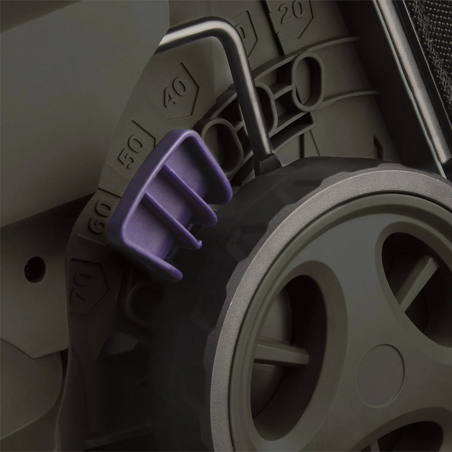 - Single lever 6 position height adjustment, with cutting heights from 20mm to 70mm